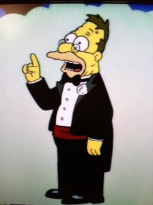 Homer breaks the rule at once–cue noisy bug encircling him—